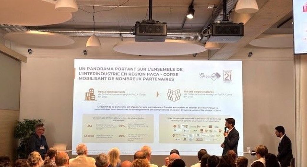 Le 8 juillet 2025, OPCO 2i Provence-Alpes-Côte d’Azur – Corse a organisé à Marseille un colloque rassemblant partenaires institutionnels, entreprises et acteurs issus du monde de l’emploi et de la formation. Au programme de cette matinée : la présentation des éléments saillants de l’étude « Panorama Emploi, compétences et formation de l’interindustrie en Provence-Alpes-Côte d’Azur et Corse » récemment publiée. Le public, attentif et expert, n’a pas manqué de réagir sur les données des besoins en recrutement annoncés pour les prochaines années : 130 000 sur cinq ans ! Les travaux sur l’adéquation entre offre de formation et besoins en recrutement ont également suscité des échanges avec les employeurs, notamment sur la difficulté à retenir les techniciens de maintenance. L’événement s’est poursuivi avec la présentation de l’offre de services d’OPCO 2i, et les initiatives engagées en matière de transition écologique et de promotion des métiers, deux sujets identifiés comme prioritaires, dans l’étude, par les entreprises de la région.